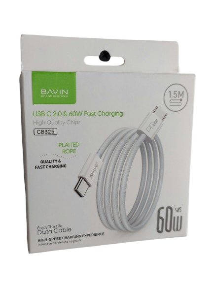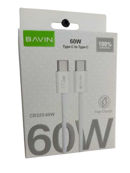 🔌 کابل شارژ سریع باوین Bavin CB325 – توان 60 وات، دو سر تایپسی